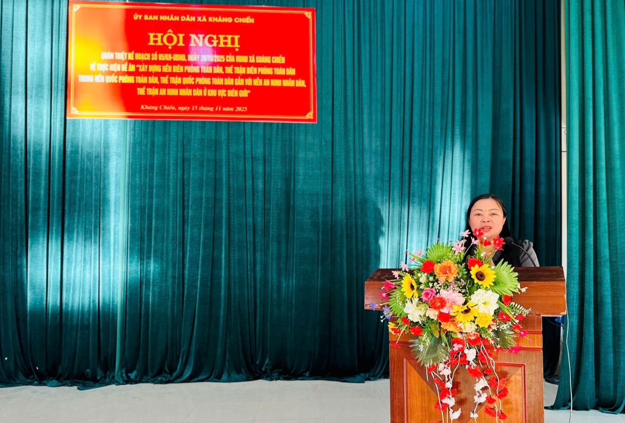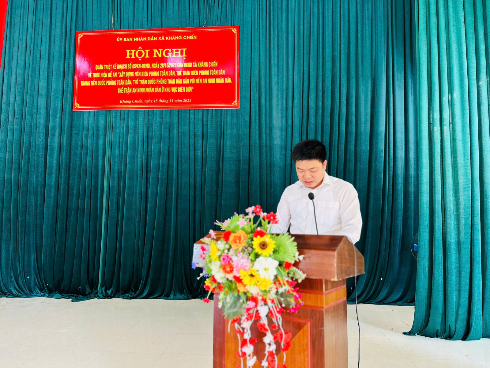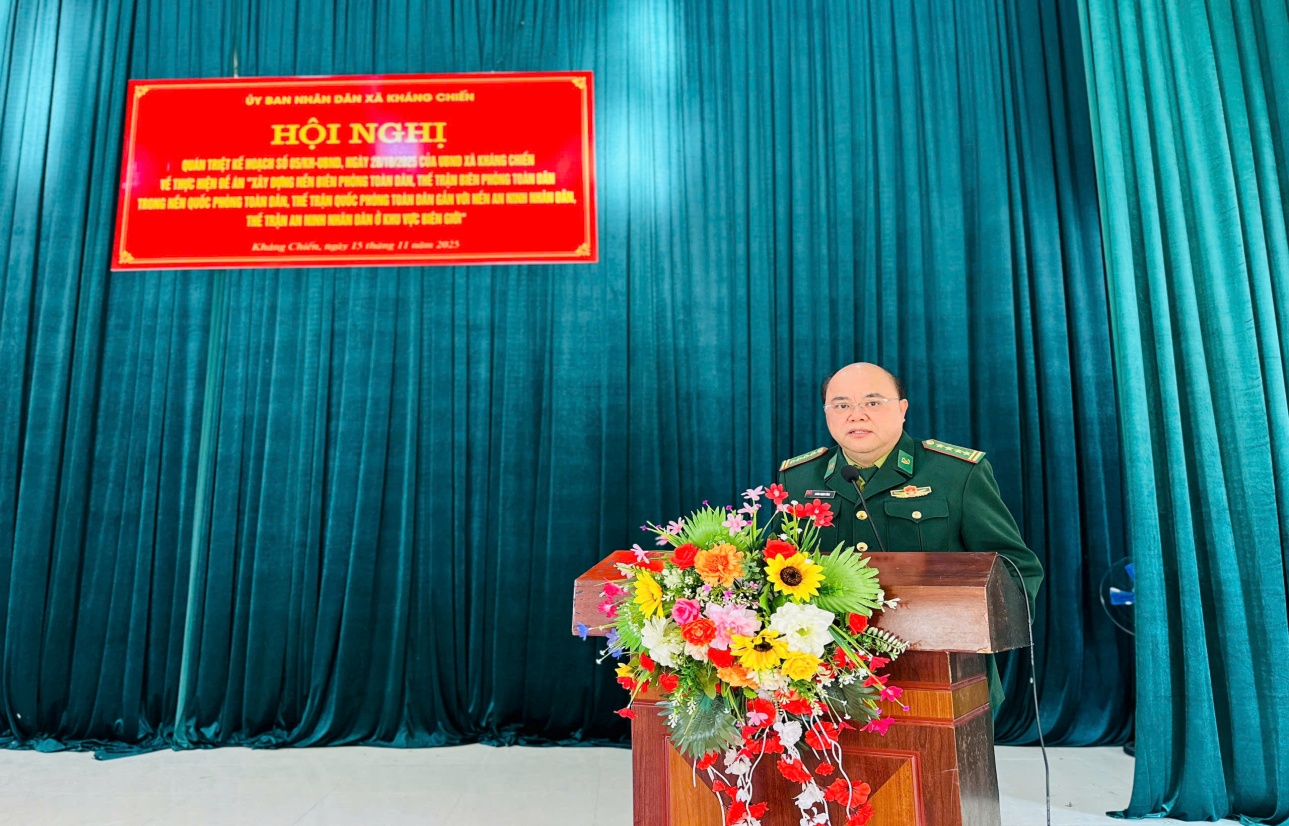 Ngày 15/11/2025, tại Hội trường Nhà Văn hóa xã Kháng Chiến, Ủy ban nhân dân xã Kháng Chiến đã tổ chức Hội nghị quán triệt Kế hoạch số 05/KH-UBND ngày 28/10/2025 của UBND xã về thực hiện Đề án “Xây dựng nền Biên phòng toàn dân, thế trận biên phòng toàn dân trong nền quốc phòng toàn dân, thế trận quốc phòng toàn dân gắn với nền an ninh nhân dân, thế trận an ninh nhân dân ở khu vực biên giới”.