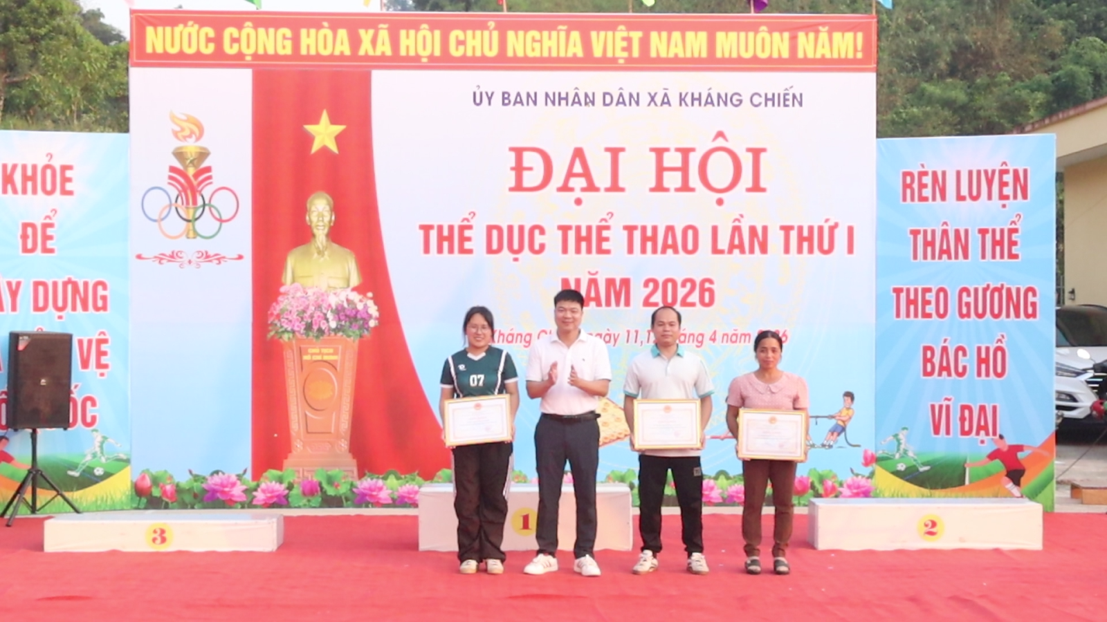 Cũng tại buổi lễ, lãnh đạo UBND xã đã trao tặng giấy khen cho 3 tập thể và 6 cá nhân đã có thành tích xuất sắc trong phong trào thể dục thể thao xã Kháng Chiến lần thứ I năm 2026./.