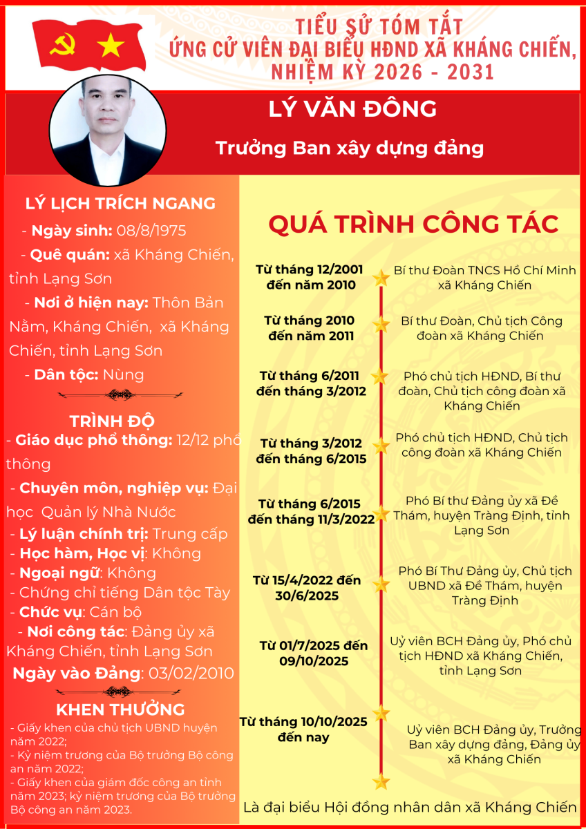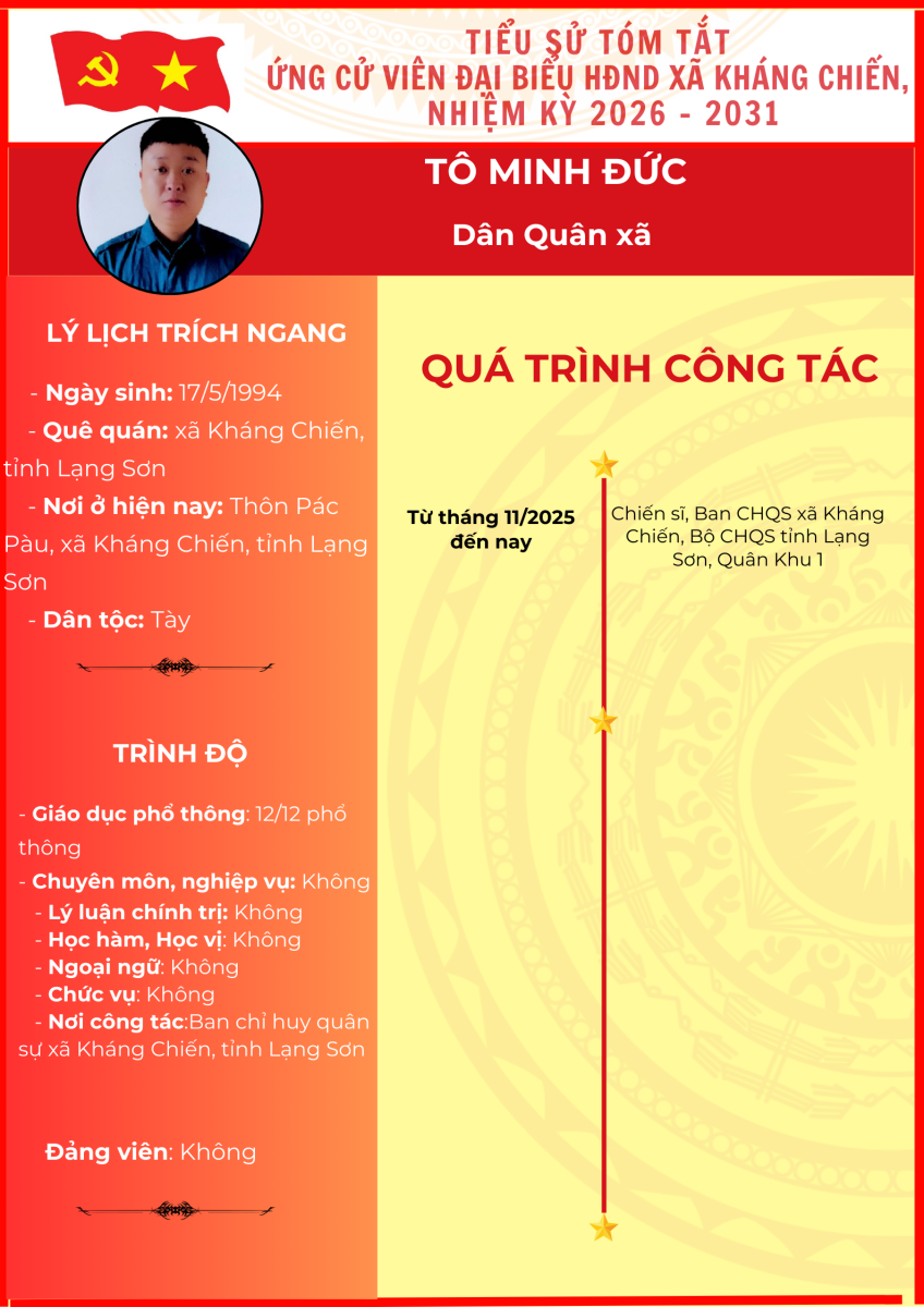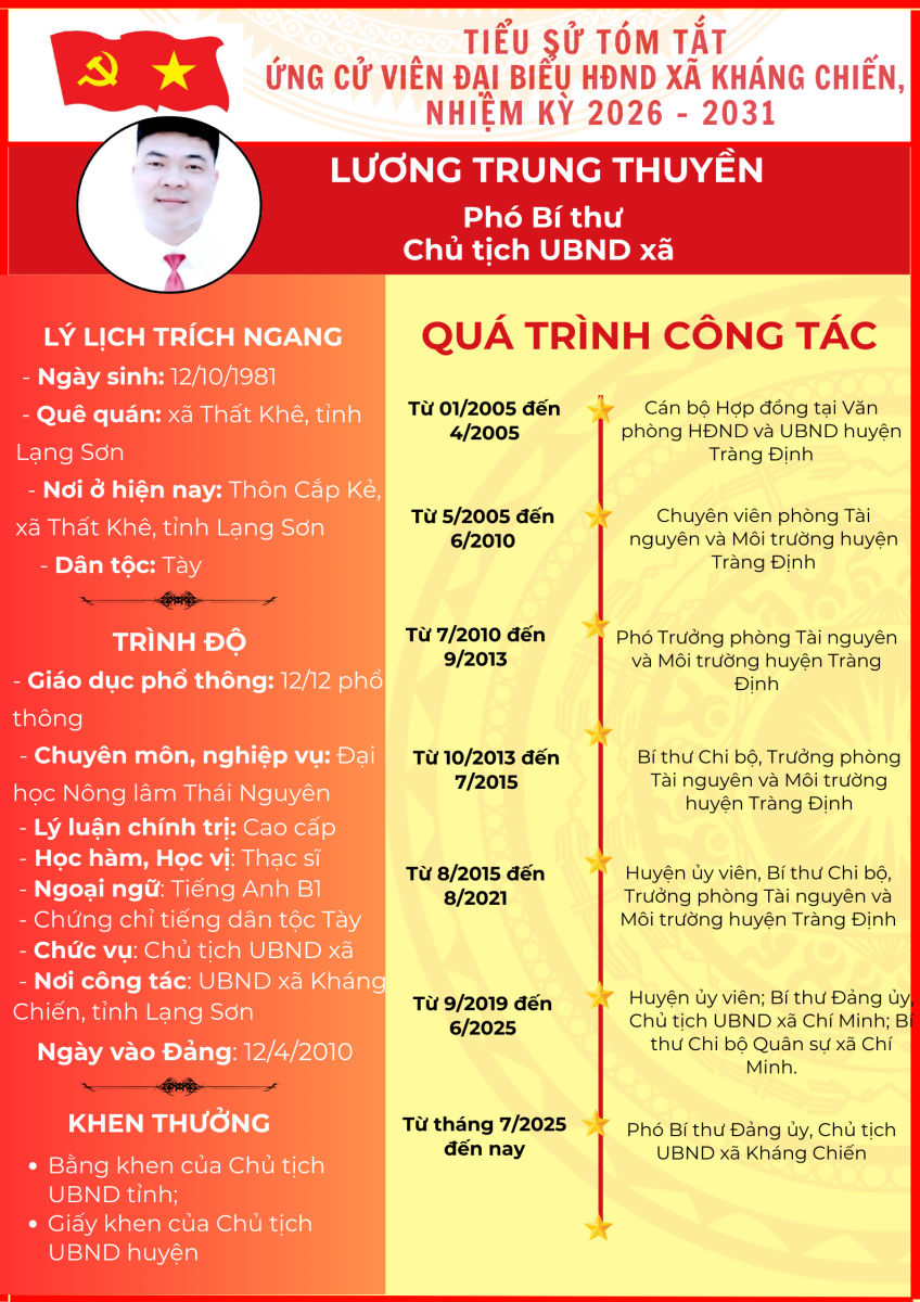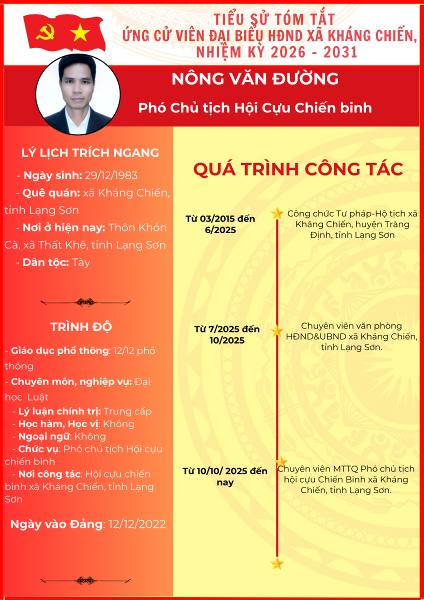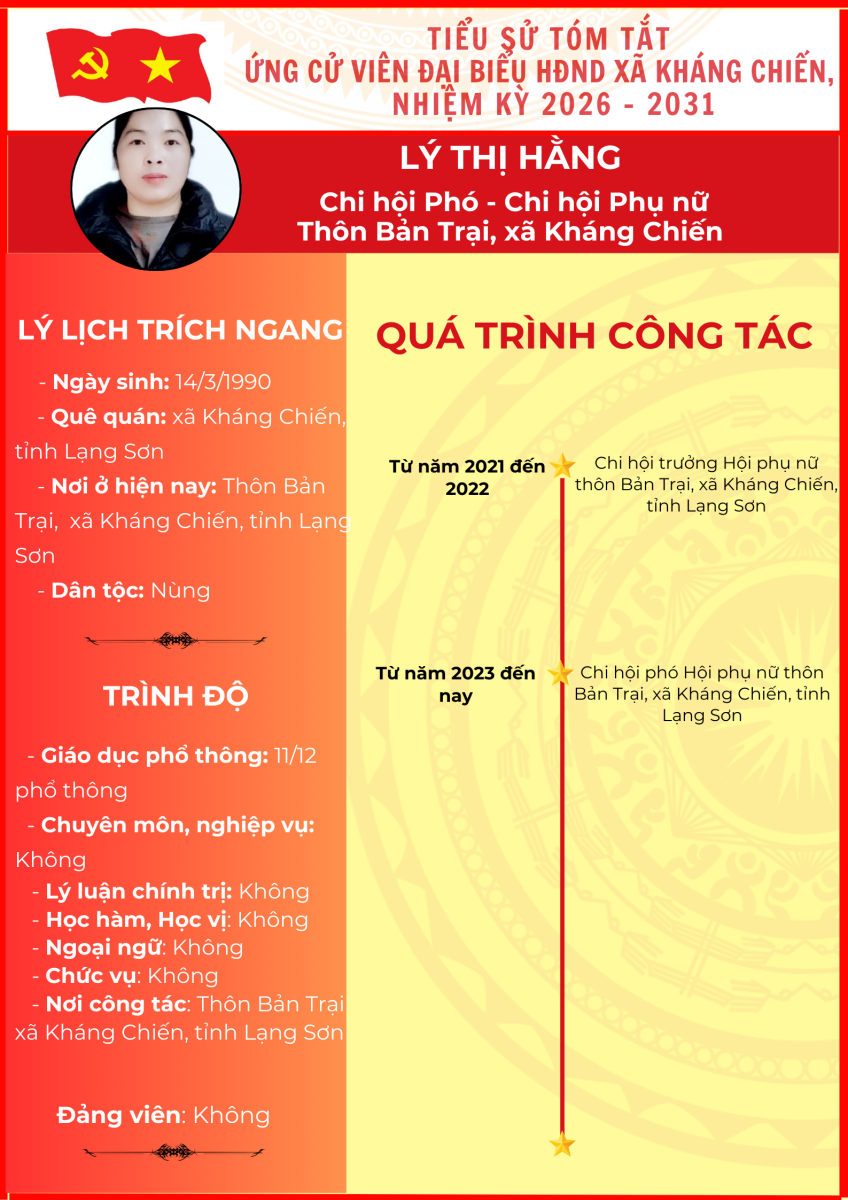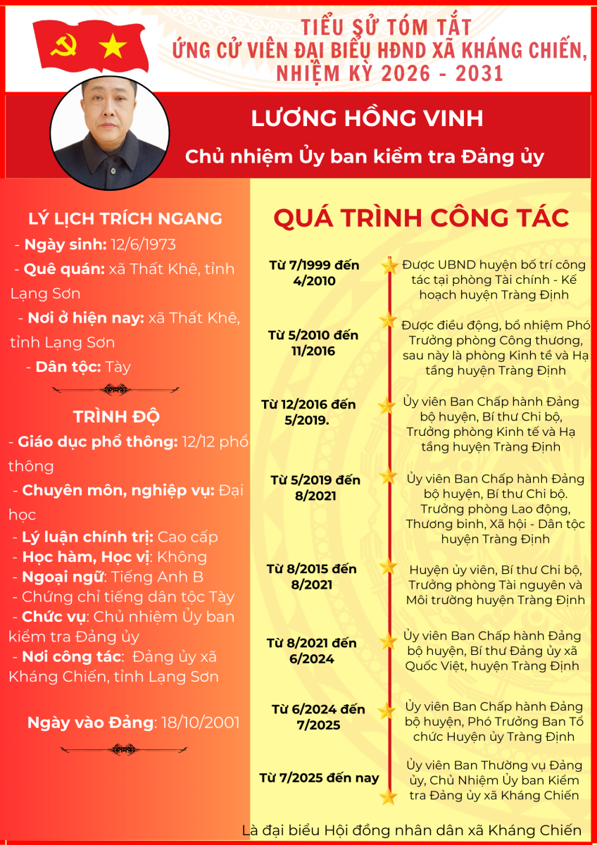 TIỂU SỬ TÓM TẮT (QUÁ TRÌNH CÔNG TÁC) CỦA NGƯỜI ỨNG CỬ ĐẠI BIỂU HỘI ĐỒNG NHÂN DÂN XÃ KHÁNG CHIẾN NHIỆM KỲ 2026 - 2031