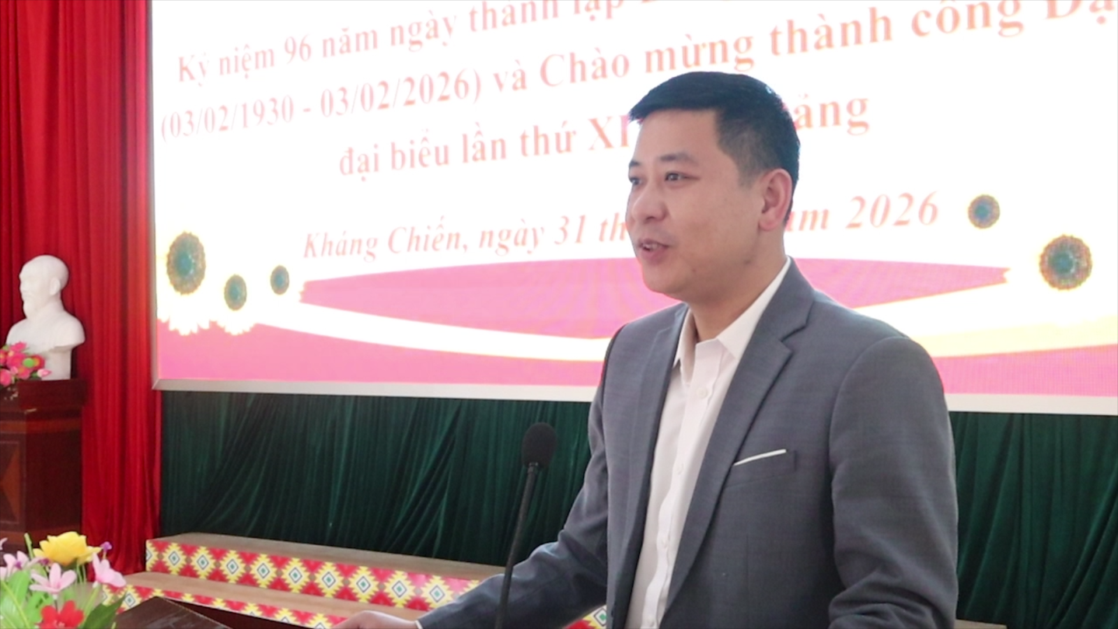 “Đồng chí Tô Ngọc Anh, Phó chủ Tịch UBND xã Kháng Chiến phát biểu khai mạc”.