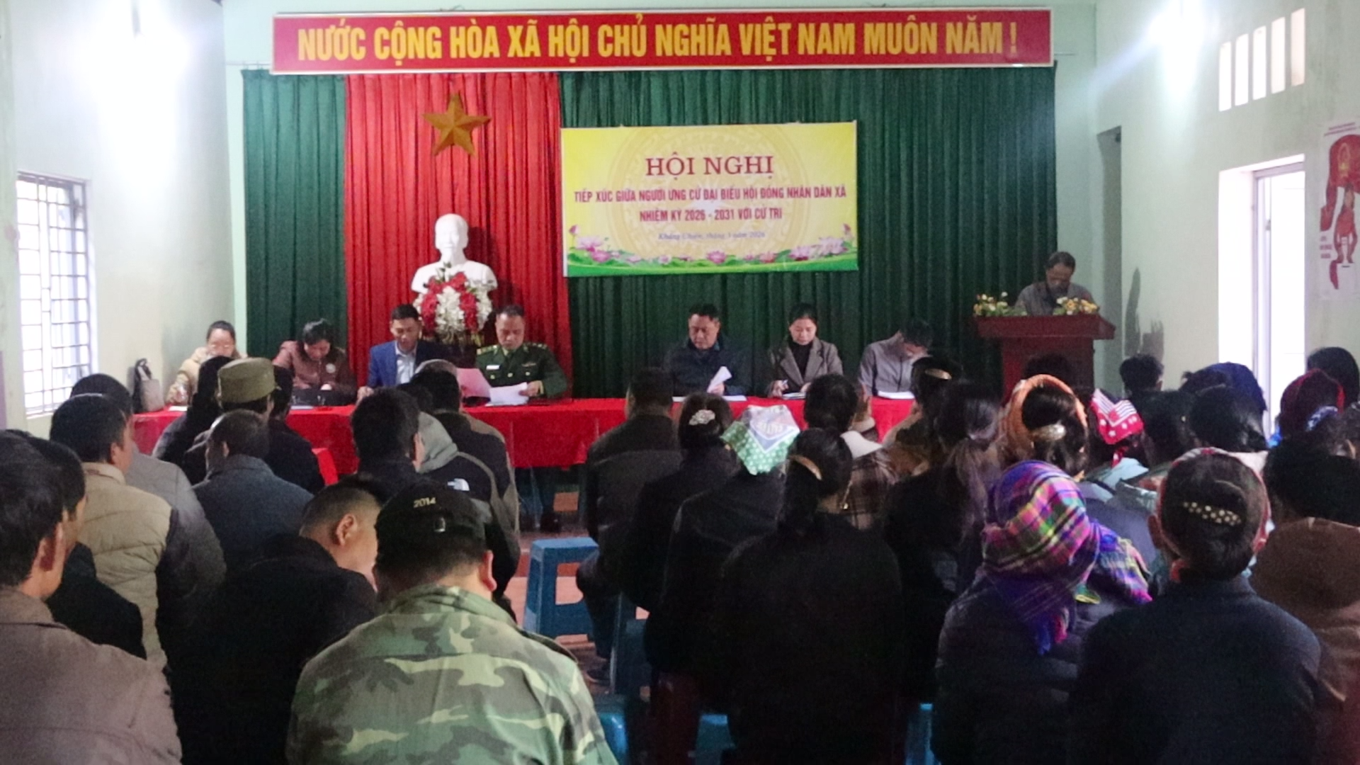 Chiều 10/3/2026, tại Nhà văn hóa thôn Pò Loi, Ban Thường trực Ủy ban Mặt trận Tổ quốc Việt Nam xã Kháng Chiến tổ chức Hội nghị tiếp xúc cử tri với người ứng cử Đại Hội đồng nhân dân xã tại đơn vị bầu cử số 02 gồm các ông bà: Lương Chung thuyền, Phó bí thư Đảng ủy chủ tịch hội ủy ban nhân dân xã kháng chiến; Lương Hồng Vinh, ủy viên ban thường vụ Đảng ủy, chủ nhiệm ủy ban kiểm tra Đảng ủy xã kháng chiến; Bà La Thị Hồng phó chủ tịch Hội đồng nhân dân xã kháng chiến khóa; Ma Văn Mạnh, Chủ tịch ủy ban Mặt trận Việt Nam xã; Lê Xuân Ninh, phó đồn trưởng đội biên phòng Bình Nghi; Nông Văn Đường chuyên viên mặt trận tổ quốc phó; Nguyễn Thị Minh ủy viên ban kiểm tra Đảng xã kháng chiến; Nông Thủy Biên công chức trung tâm phục vụ hành chính công xã Kháng Chiến.