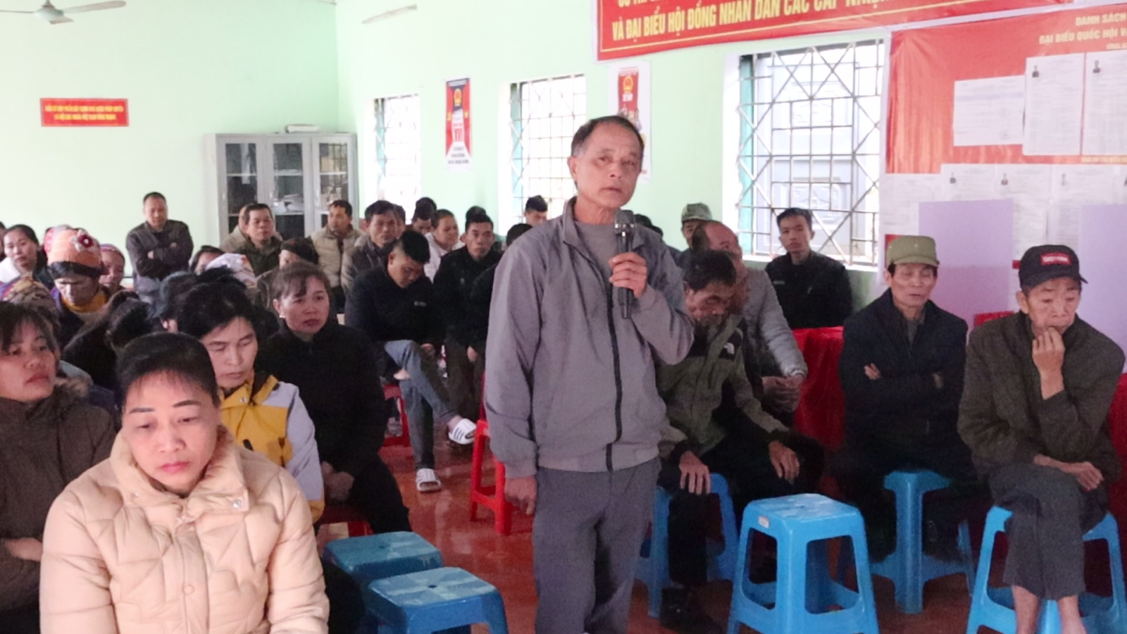 “Cử tri trong thôn trình bày ý kiến tại hội nghị”.
