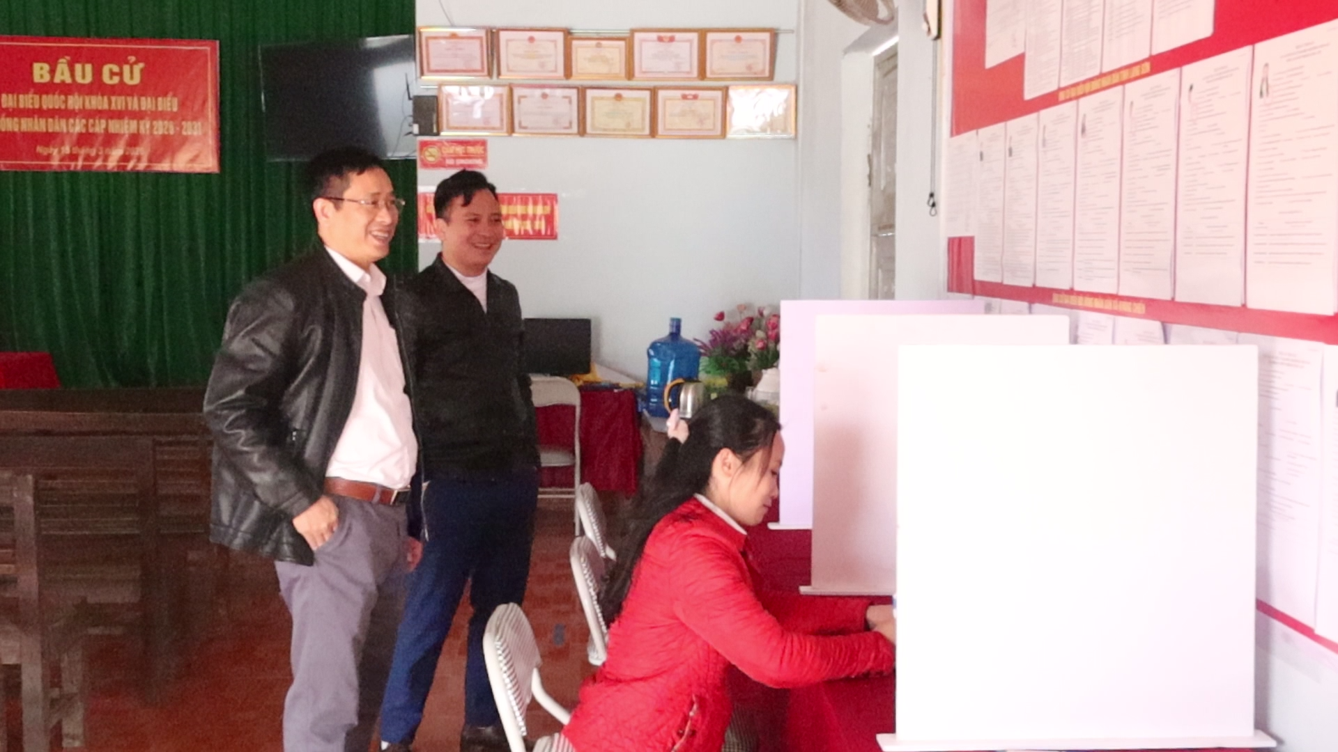 Đoàn kiểm tra số 1 của Ban chỉ đạo bầu cử Quốc hội xã kiểm tra tiến độ chuẩn bị tại các khu vực bỏ phiếu