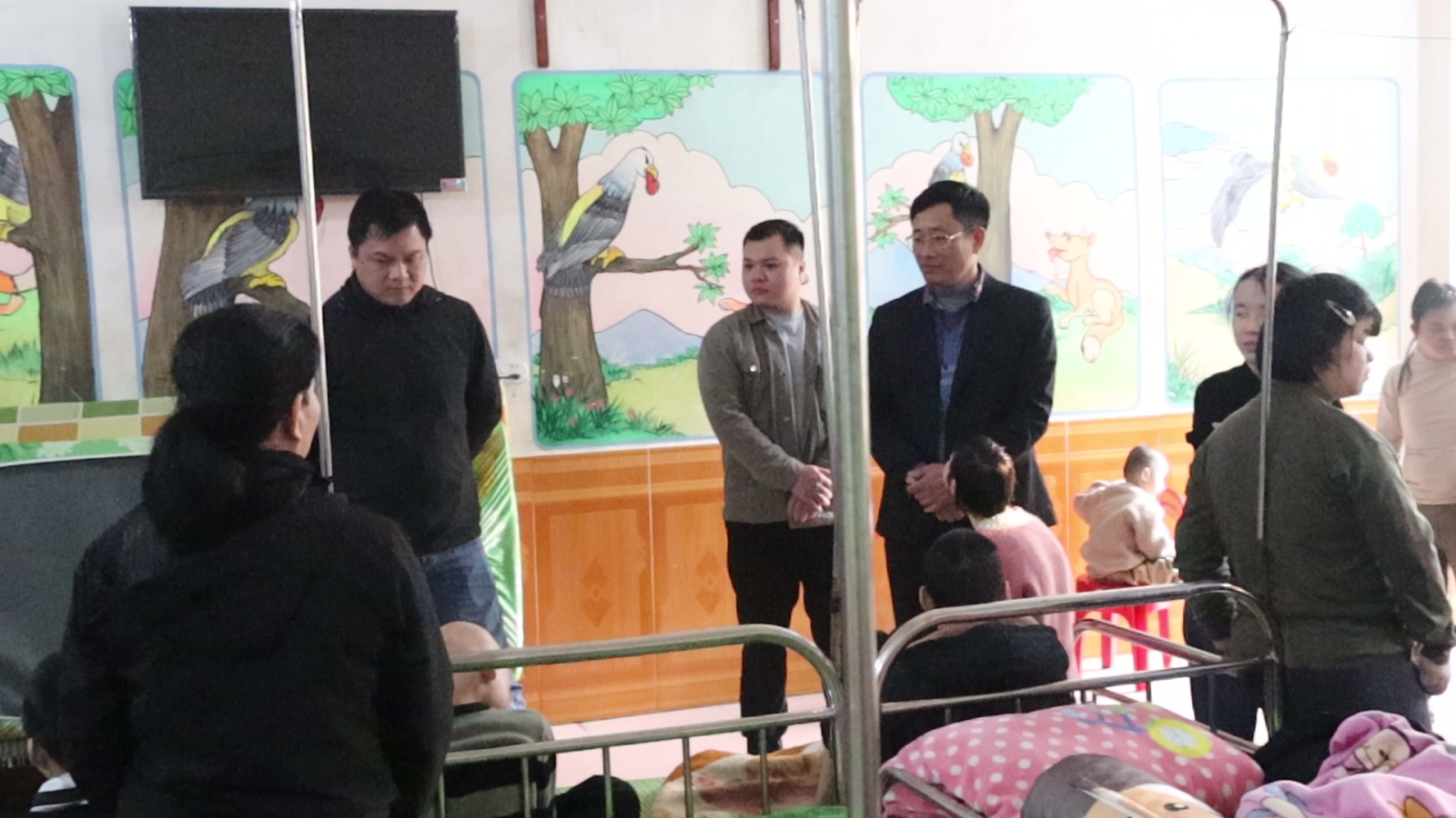 “Đồng chí Nguyễn Viết Tiến, Phó Bí thư Thường trực Đảng ủy xã thăm hỏi, động viên, chia sẻ với các cháu khuyết tật”.
