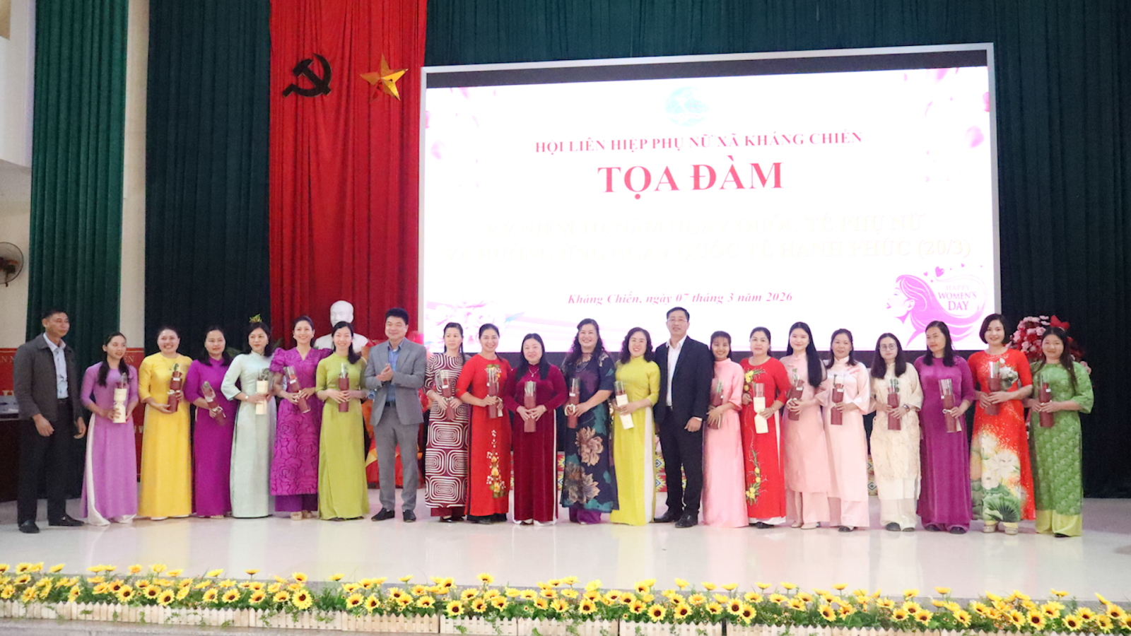 Nằm trong chuỗi các hoạt động chào mừng 8/3 và tuần lễ áo dài do Hội LHPN Việt Nam phát động, sáng ngày 7/3/2026, Hội LHPN Việt Nam xã kháng Chiến tổ chức tọa đàm kỷ niệm 116 năm Ngày Quốc tế Phụ nữ 8/3 (8/3/1910 – 8/3/2026). Tham dự có các đồng chí Thường trực Đảng ủy, HĐND, UBND, Ủy ban MTTQ Việt Nam xã; đại diện các ban, ngành, đoàn thể cùng Ban Chấp hành Hội và đông đảo hội viên phụ nữ trên địa bàn.