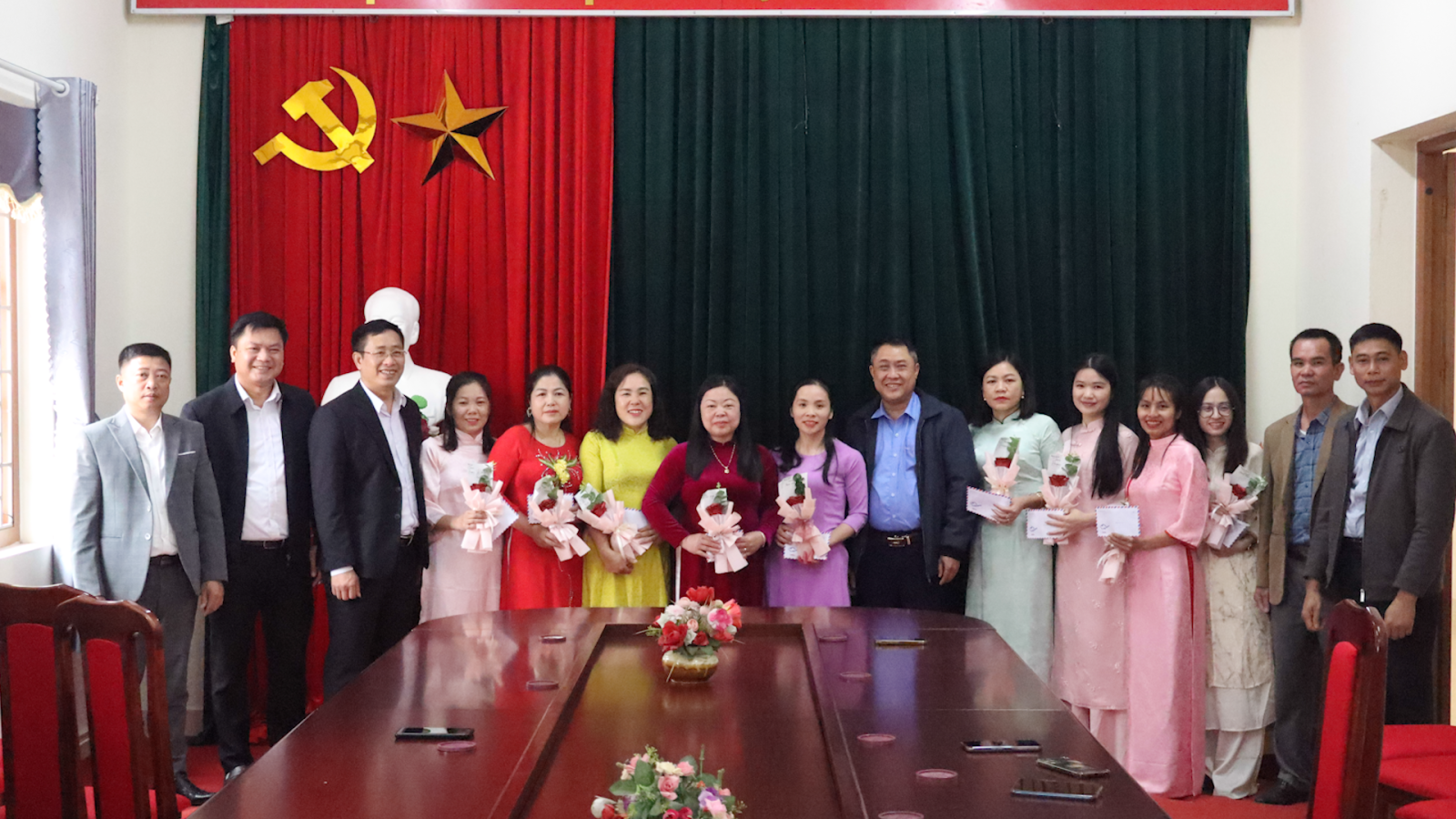Nhân dịp này, các lãnh đạo xã đã trao tặng những lẵng hoa tươi thắm chúc mừng Hội LHPN xã và toàn thể cán bộ, hội viên phụ nữ./.