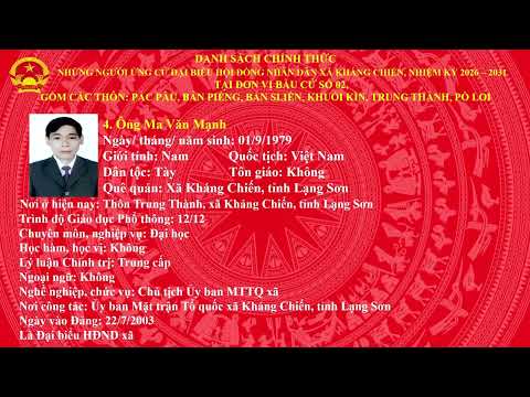 DANH SÁCH ỨNG CỬ ĐẠI BIỂU HỘI ĐỒNG NHÂN DÂN XÃ KHÁNG CHIẾN, NHIỆM KỲ 2026 – 2031. ĐƠN VỊ BẦU CỬ SỐ 02